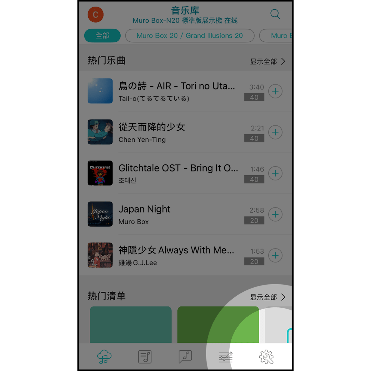 成功连线网路后,Muro Box会播放一小段音乐,app画面会显示成功连上网路。点击下面「前往音乐库」便可以寻找喜欢的乐曲播放了