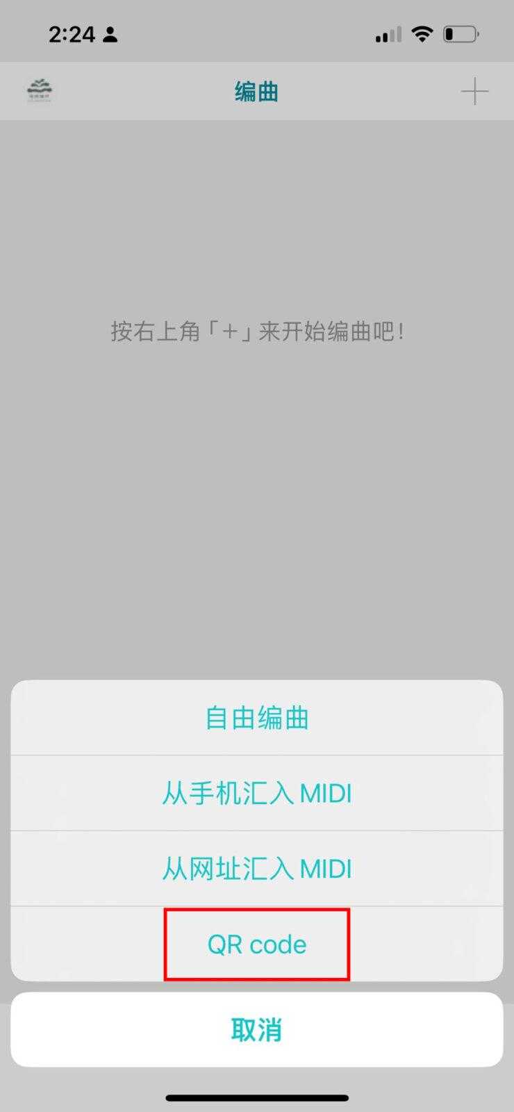 第二步:点选右上角的 ”+” ,并且选择 “QR code”