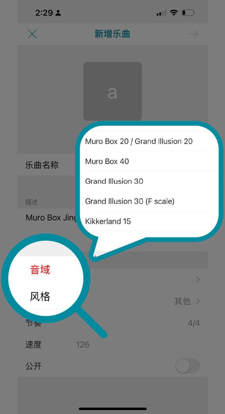 *请注意:Muro Box 支援播放的格式为 40, 30、30F、15、W20 音阶的乐曲。