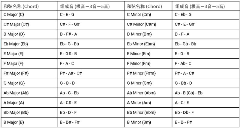 当低音区出现 Muro Box 无法弹奏的这四个半音,谱上并不会出现红色,需要自己检查,我一般会直接将其直接升高八度保留原本和弦的特性,您也可尝试用该音所属和弦的三度音、五度音或根音来替代(请参考下表),实际上以听起来顺耳为主。