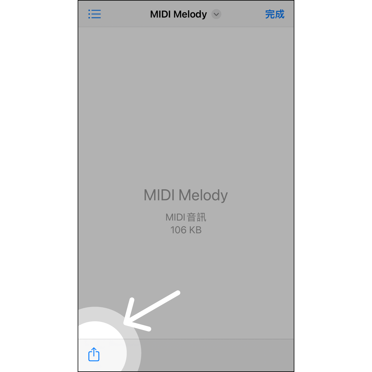 用"档案分享"汇入MIDI音乐 1. 在「档案」app 分享 进入「档案」app 选择 MIDI 档案后,按左下角「分享」图示。2. 分享至 Muro Box app 接着选择「Muro Box」。3. 编辑乐曲资讯 之后会直接开启 Muro Box app。若已经登入帐号,则会进入编辑输入的乐曲资讯的画面。4. 需先登入帐号 如果尚未登入帐号,则会显示登入画面。登入后也会进入编辑乐曲资讯的画面。