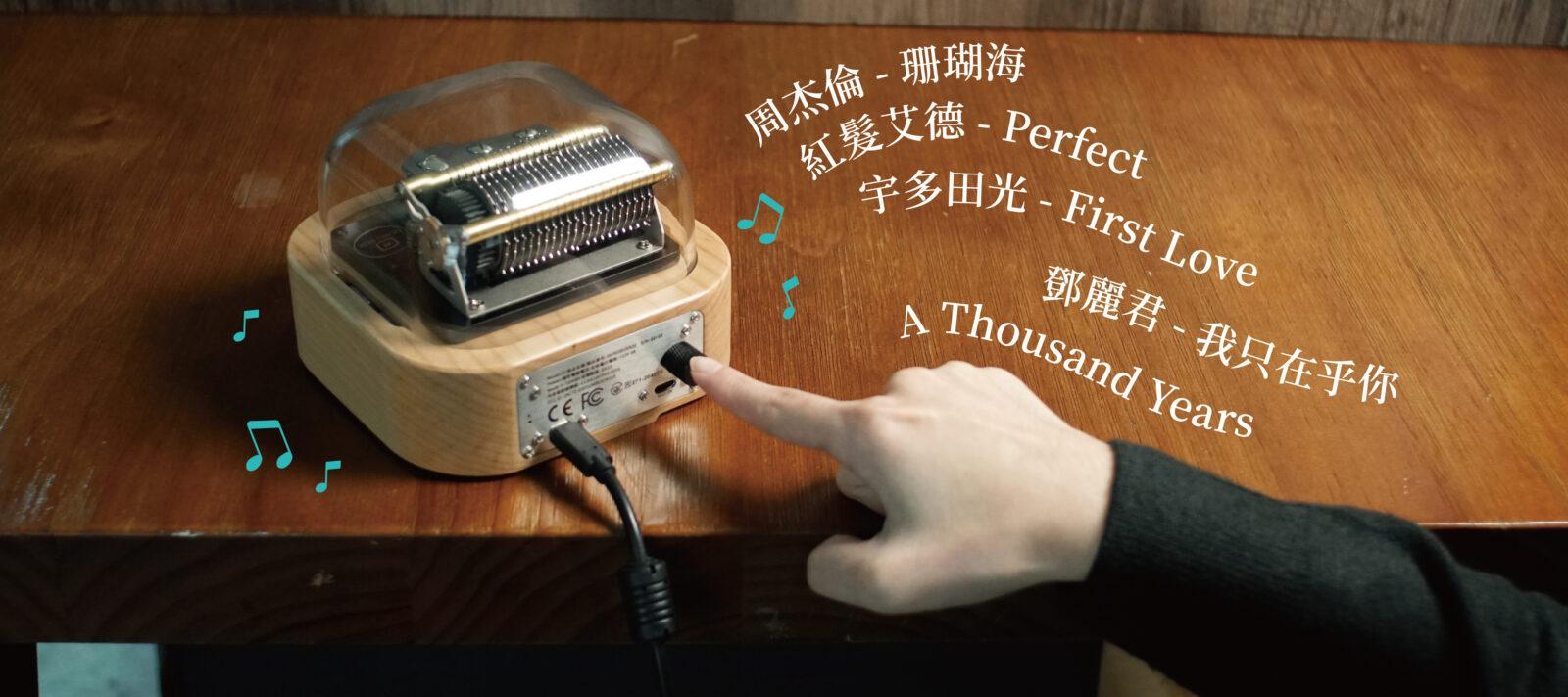 客户H先生选择两首歌曲:「如果可以」+「一路上有你」作为音乐盒出货前的预设歌单,在歌名上藏巧思,让对方在猜歌的当下突然拼凑出另一个讯息。只能说我们的客户都很浪漫呢!