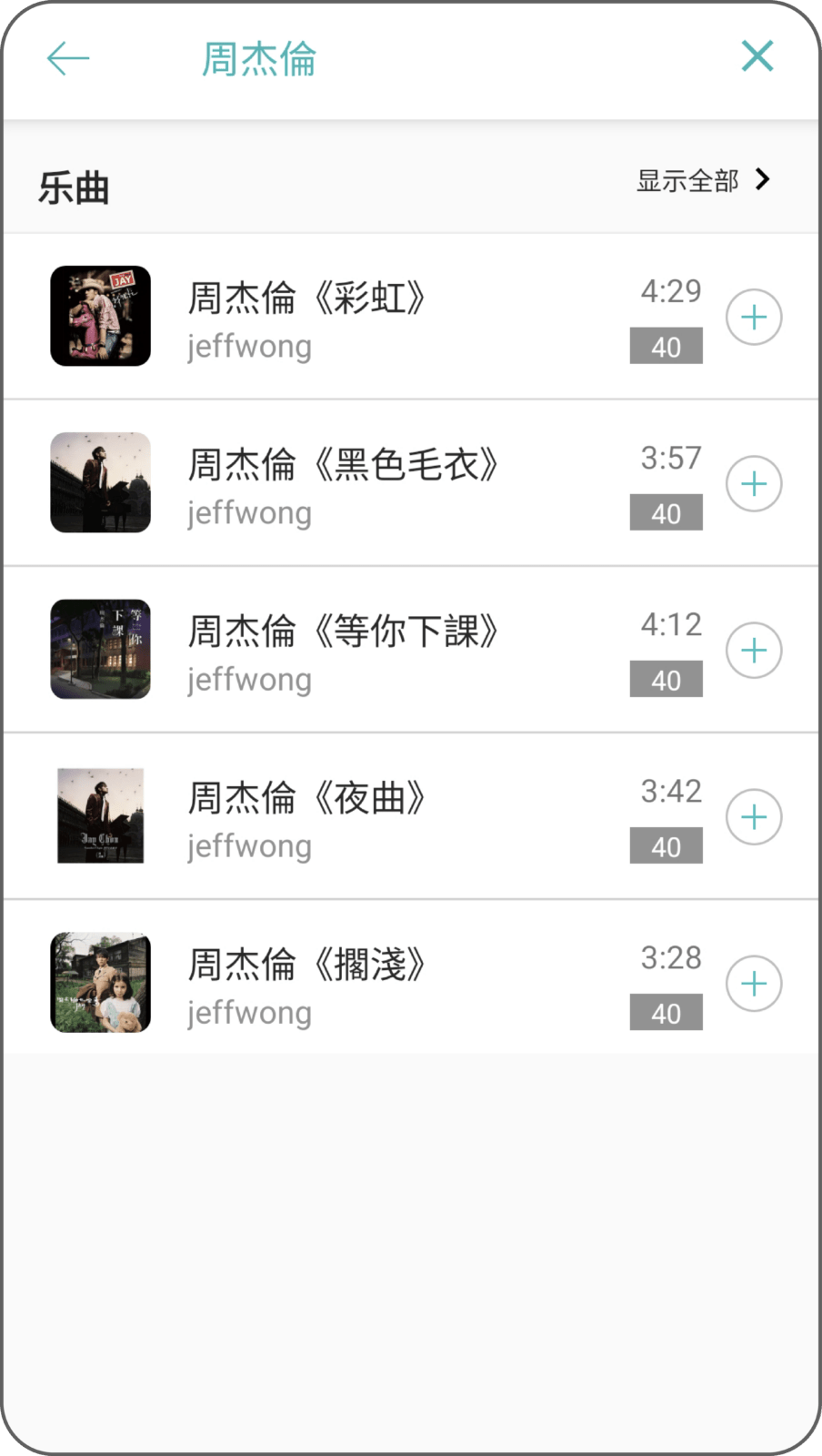 在搜寻栏键入歌名或歌手名会显示找到的结果,点下去试听看看吧!