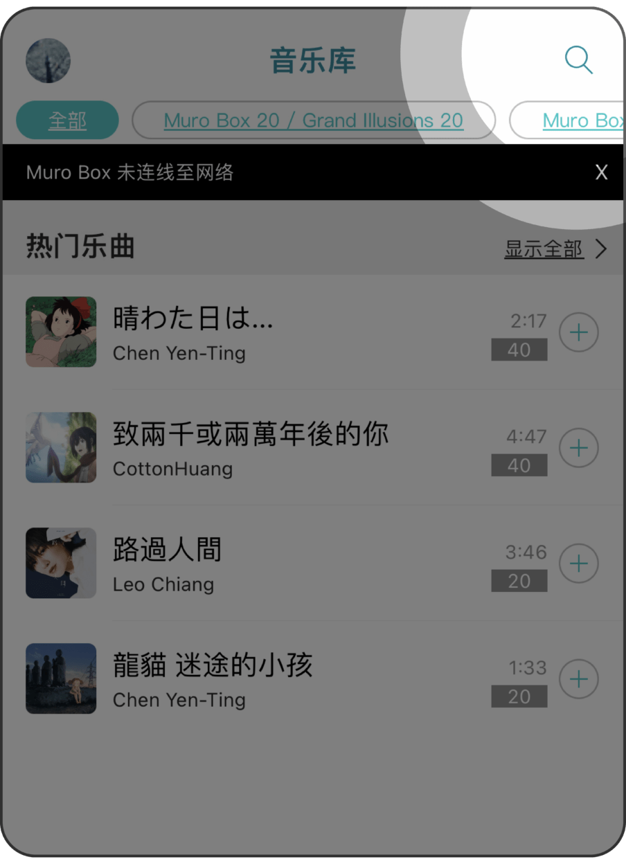 如果您没有指定歌单封面照,我们将用Muro Box 产品照片当作预设图片显示。