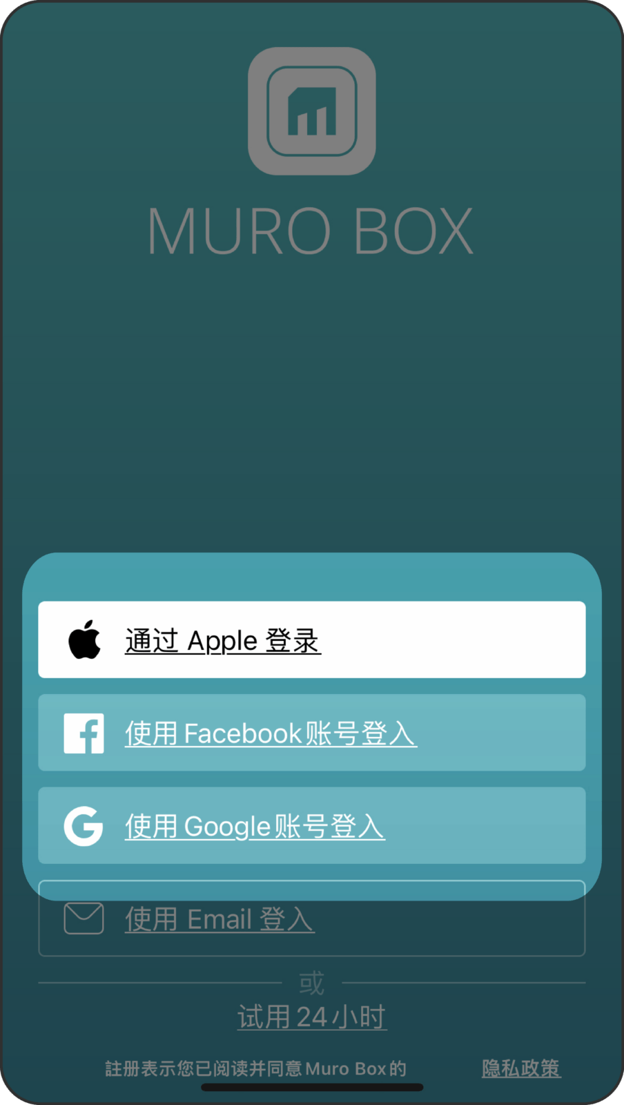 打开App后您可选择 Email / Facebook / Google / Apple ID其中一种方式来快速注册。