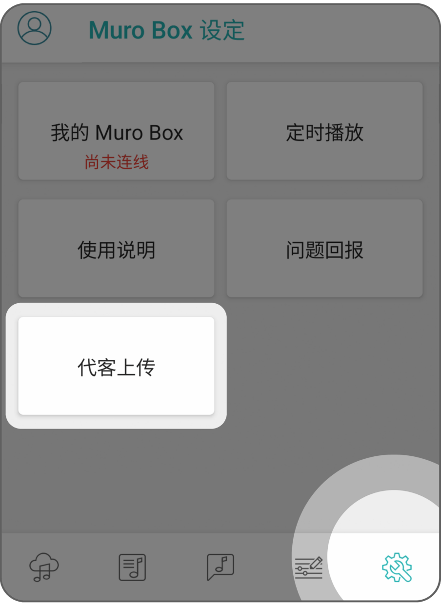 在APP中完成歌单设定后,您可直接在APP下方工具列最右方的「设定」中,看到代客上传的表单,填写后送出。