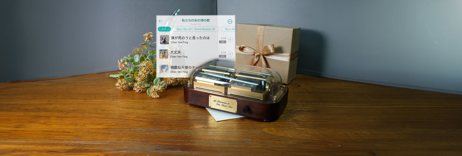 Muro Box-N40 公式プレイリスト - 💡 ワンポイント:オフラインプレイリストはいつでも変更可能!オルゴールを受け取った後、専用 App と連携すれば、5万曲以上のライブラリから自由にオフラインプレイリストを差し替え・調整できます。次回「ワンクリック再生」をすると、最新の同期済みお気に入り曲がすぐに再生されます。
