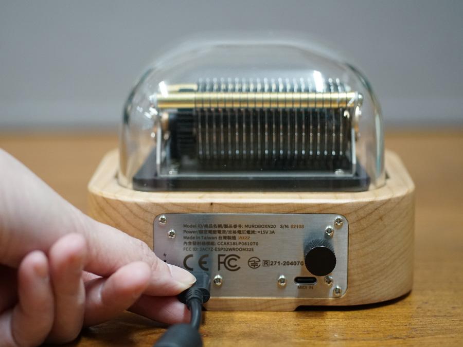 電源ケーブルを接続してオルゴールの電源を入れます。起動完了まで30秒ほどお待ちください。