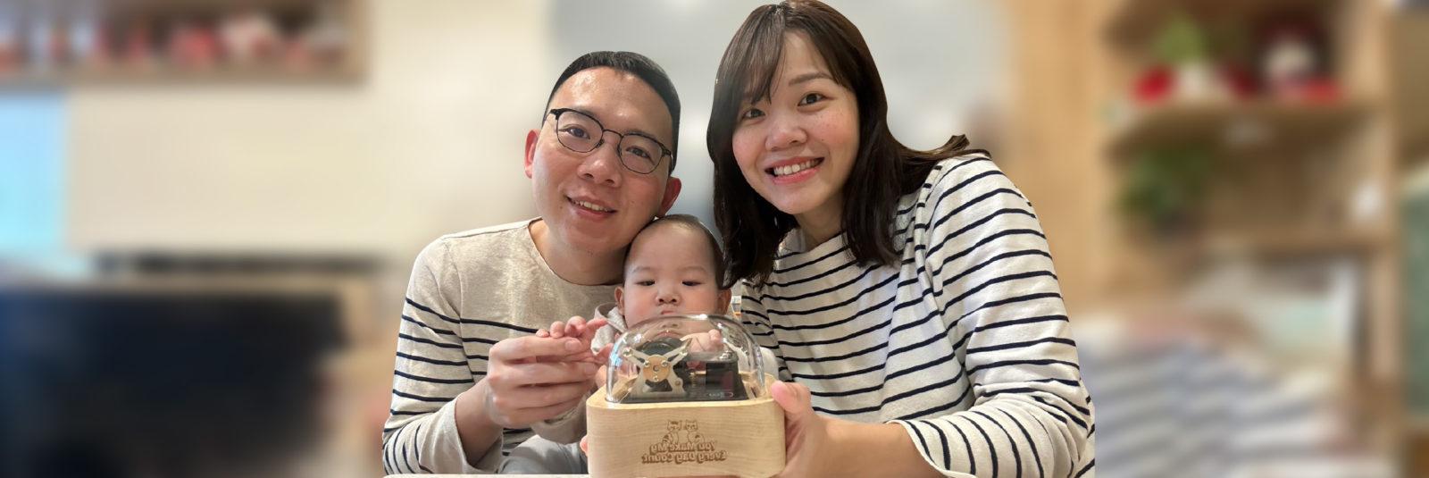 夫はオルゴールを受け取ったとき、とても興奮し感動していました!嬉しそうに箱を開けると、中には私が事前に隠しておいたカードが入っていて、そのカードには昔の写真がたくさん入っていました。そして、オルゴールから私たちにとって深い意味と共感を持つ曲が流れる中、交際から結婚、そして子どもを授かるまでの道のりを一緒に振り返っていると、夫は静かに涙をこぼしました(笑)。私もその曲を聴きながら、目頭が熱くなりました。
