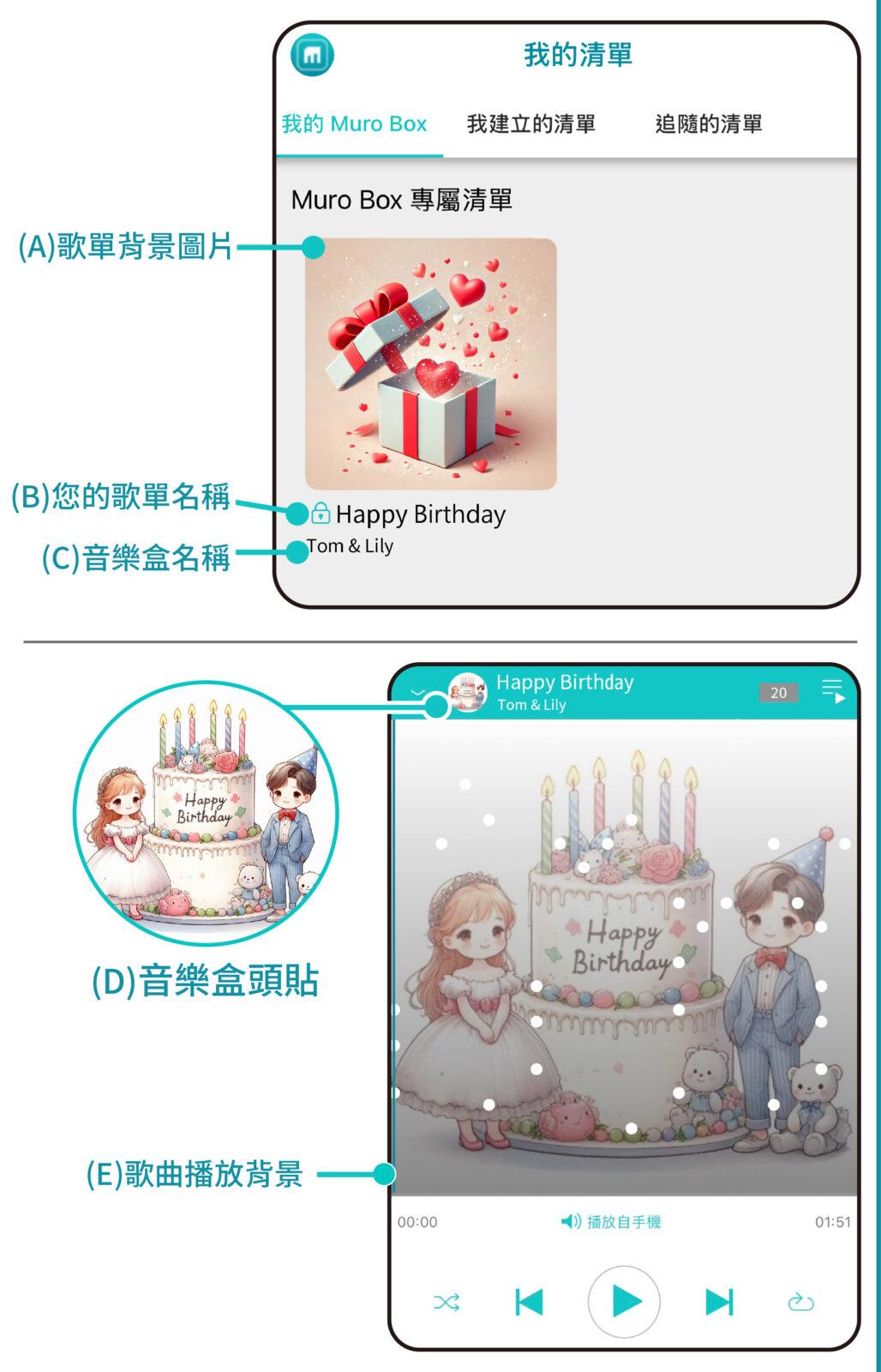 8個中文字(含)以內,包含空白或標點符號。若不指定則顯示「本音樂盒的專屬清單」