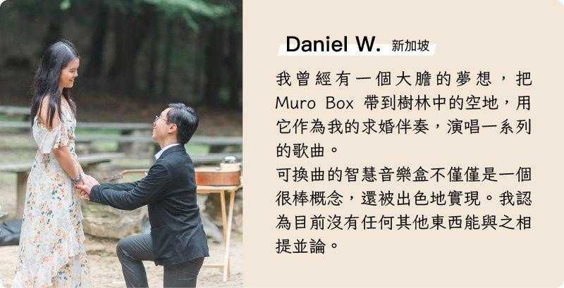 例如我們新加坡的顧客,Daniel W., 他為了使用N20在森林中求婚,特別去買了搭配的行動電源。